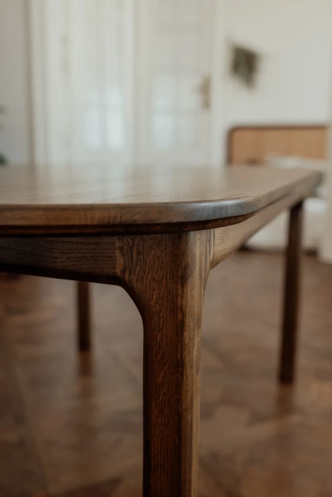 Rzemiosło wymaga czasu i cierpliwości, dlatego pracujemy wyłącznie na materiałach, które przetrwają próbę pokoleń. Wybieramy polskie drewno – trwałe, piękne i szlachetne. Inwestujemy w nie nasze zasoby i serce, by finalny mebel nie był tylko wyposażeniem wnętrza, ale świadkiem rodzinnych spotkań przez długie lata.
