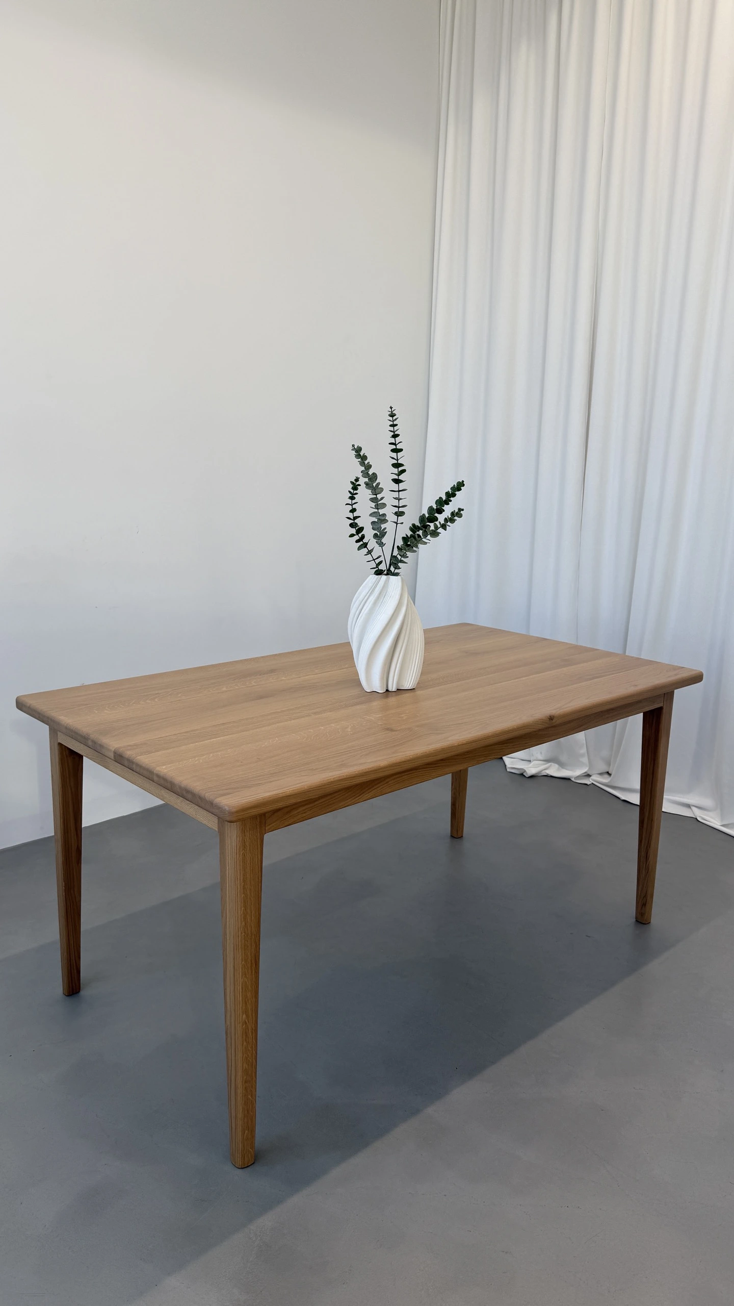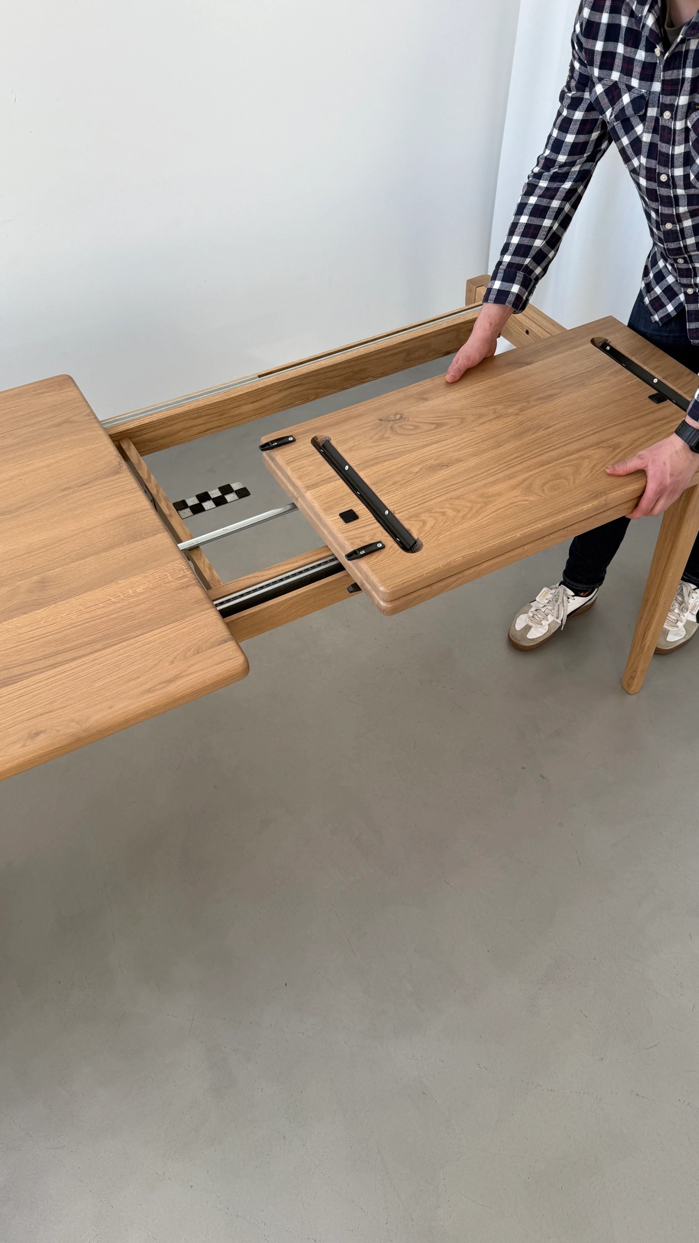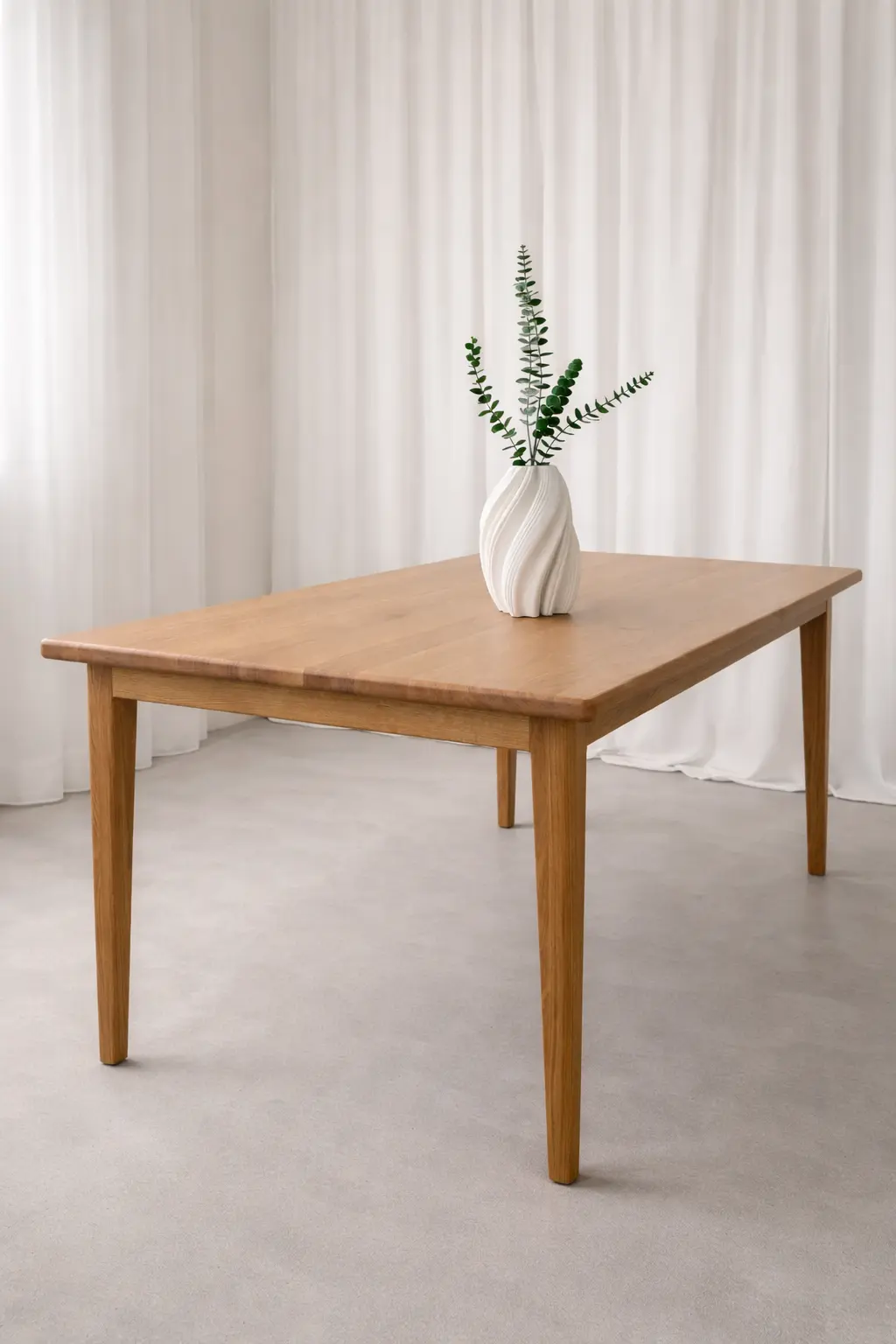 Każdy stół wykonany jest z prawdziwego drewna dębowego – żadnych oklein. Naturalny materiał gwarantuje trwałość i ponadczasowy wygląd.