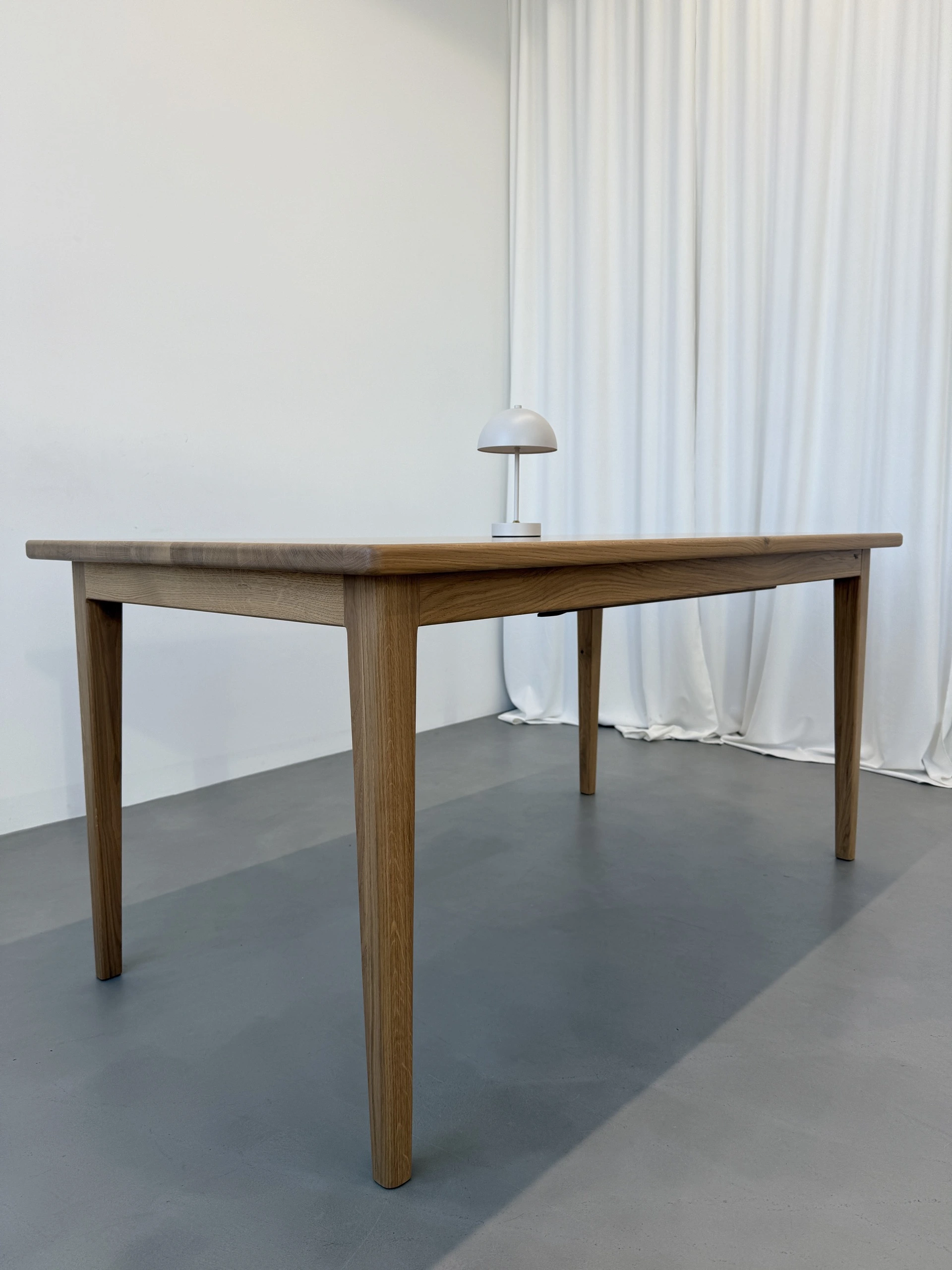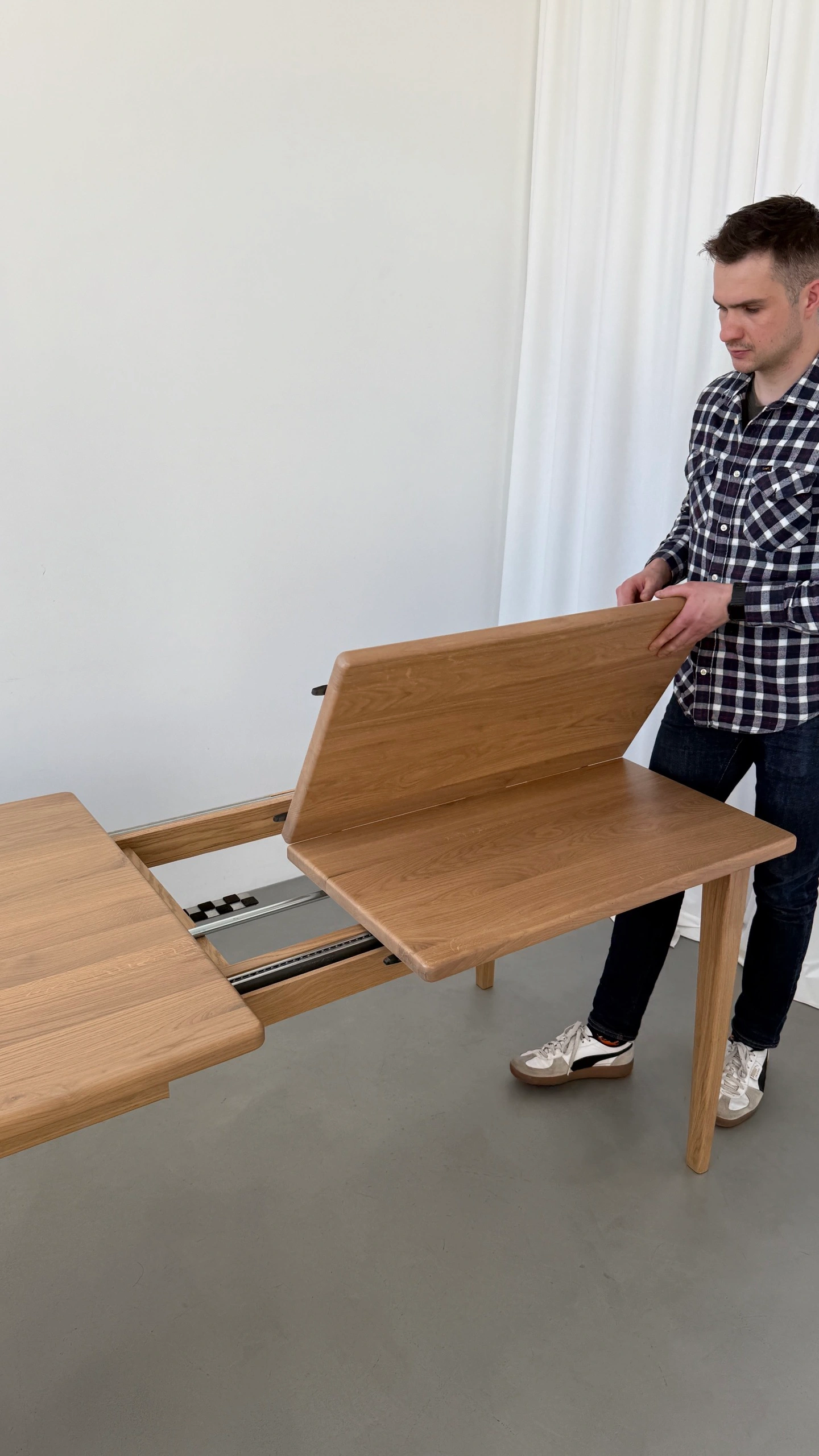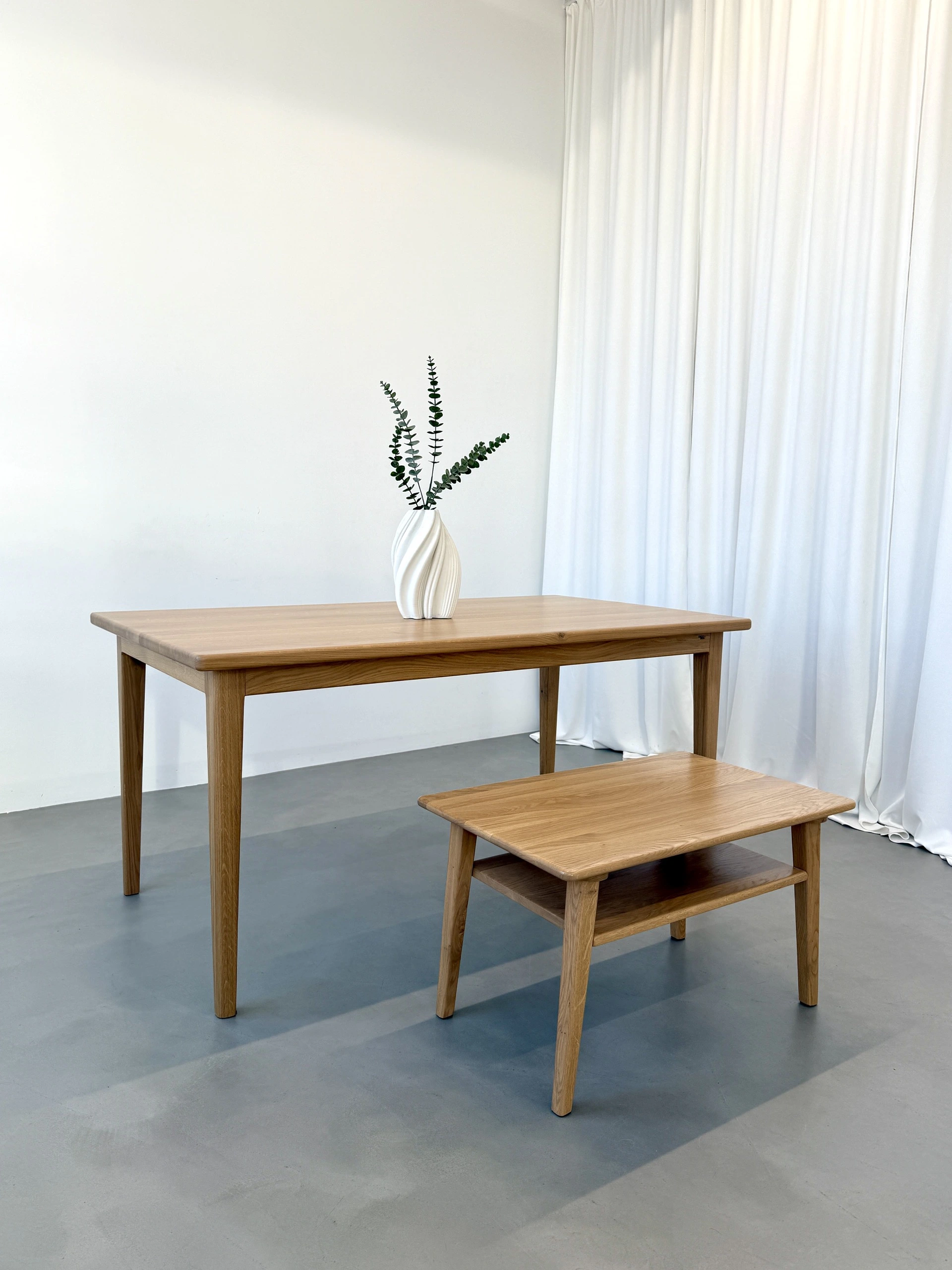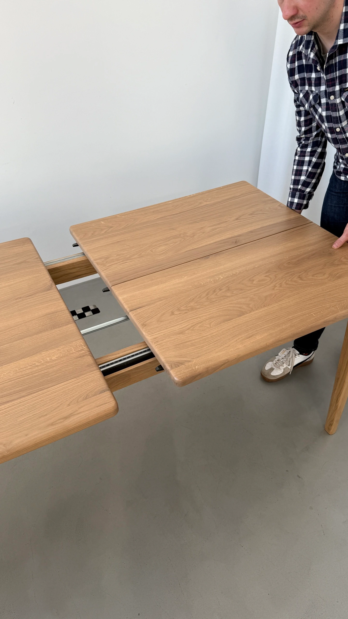 Każdy stół wykonany jest z prawdziwego drewna dębowego – żadnych oklein. Naturalny materiał gwarantuje trwałość i ponadczasowy wygląd.