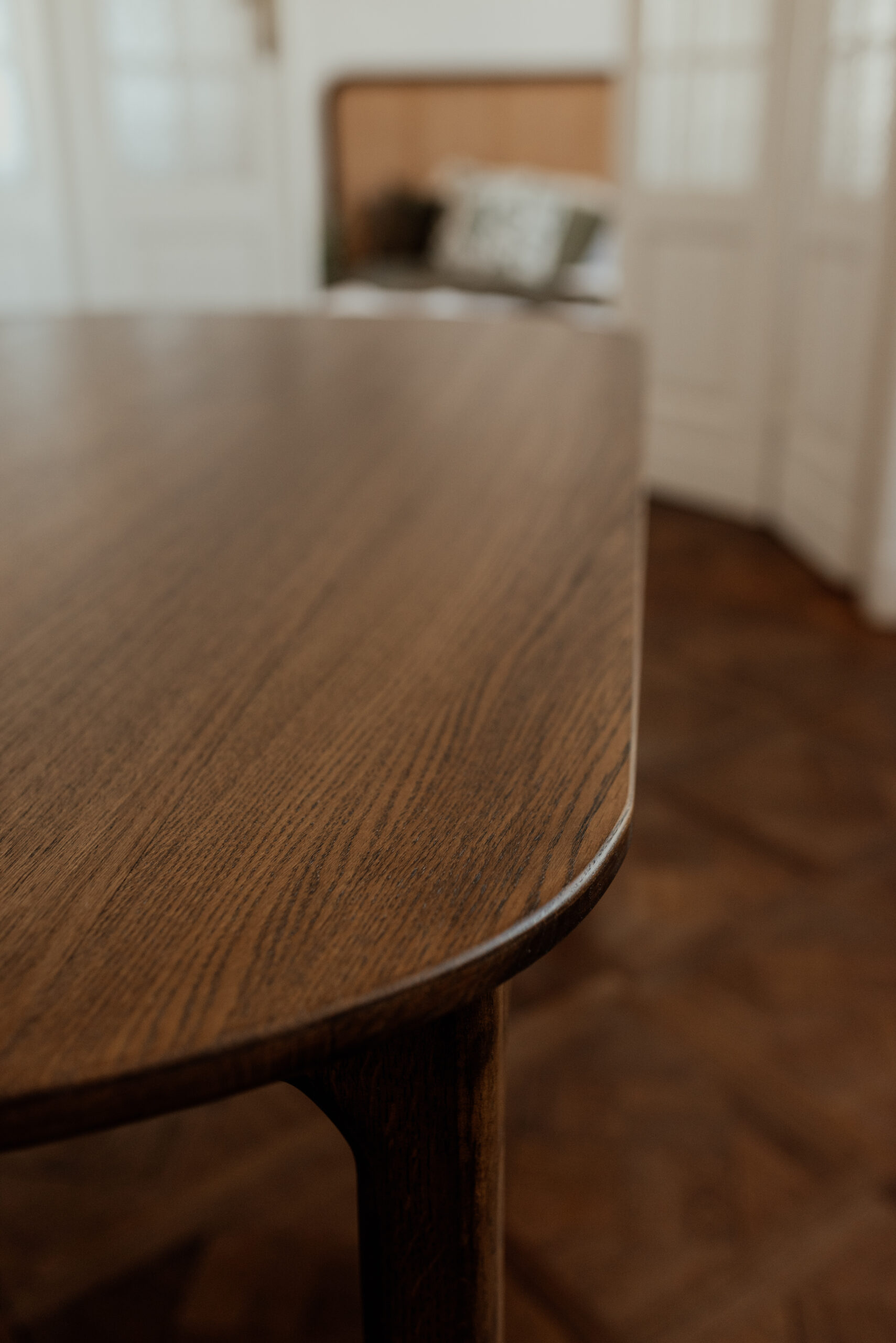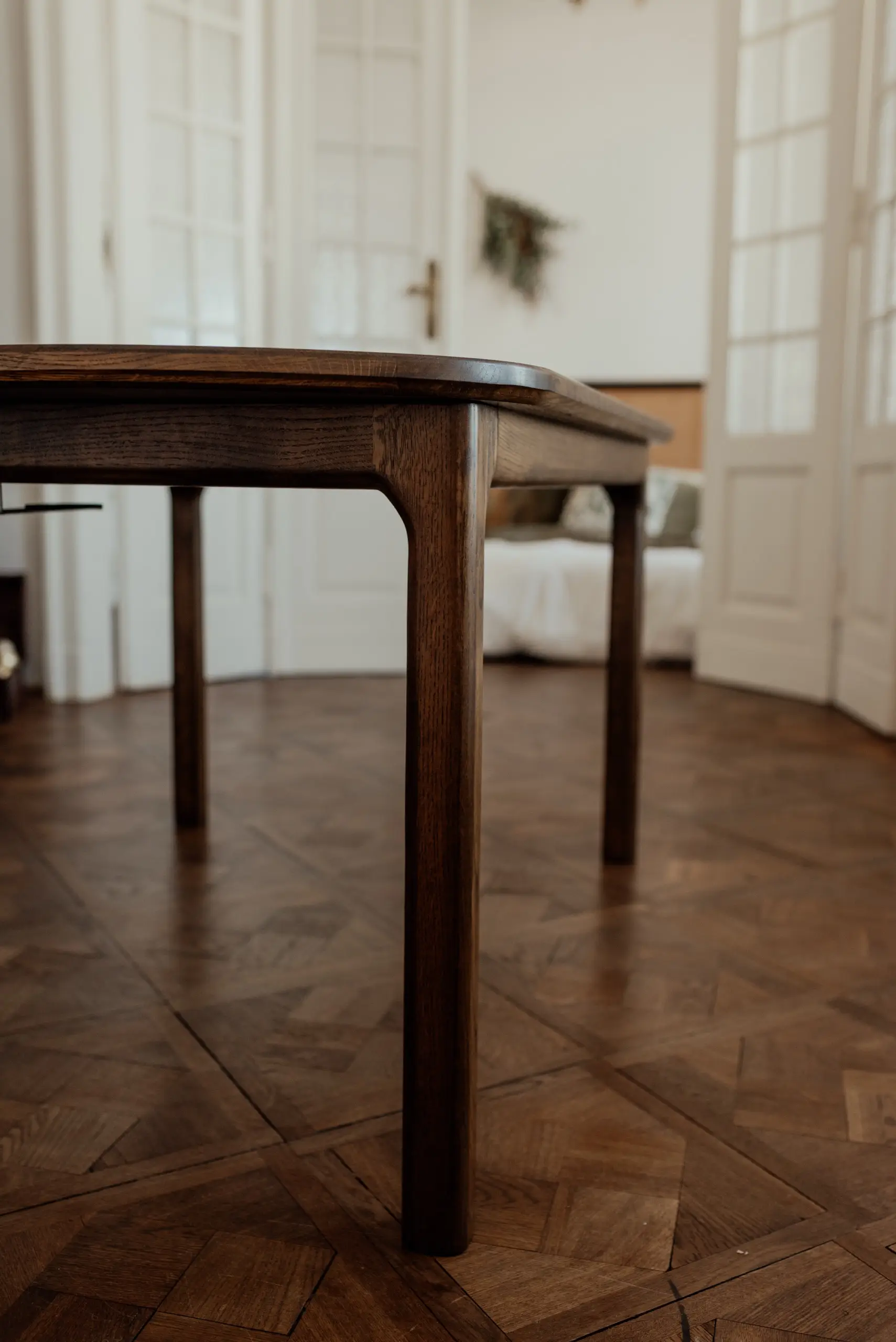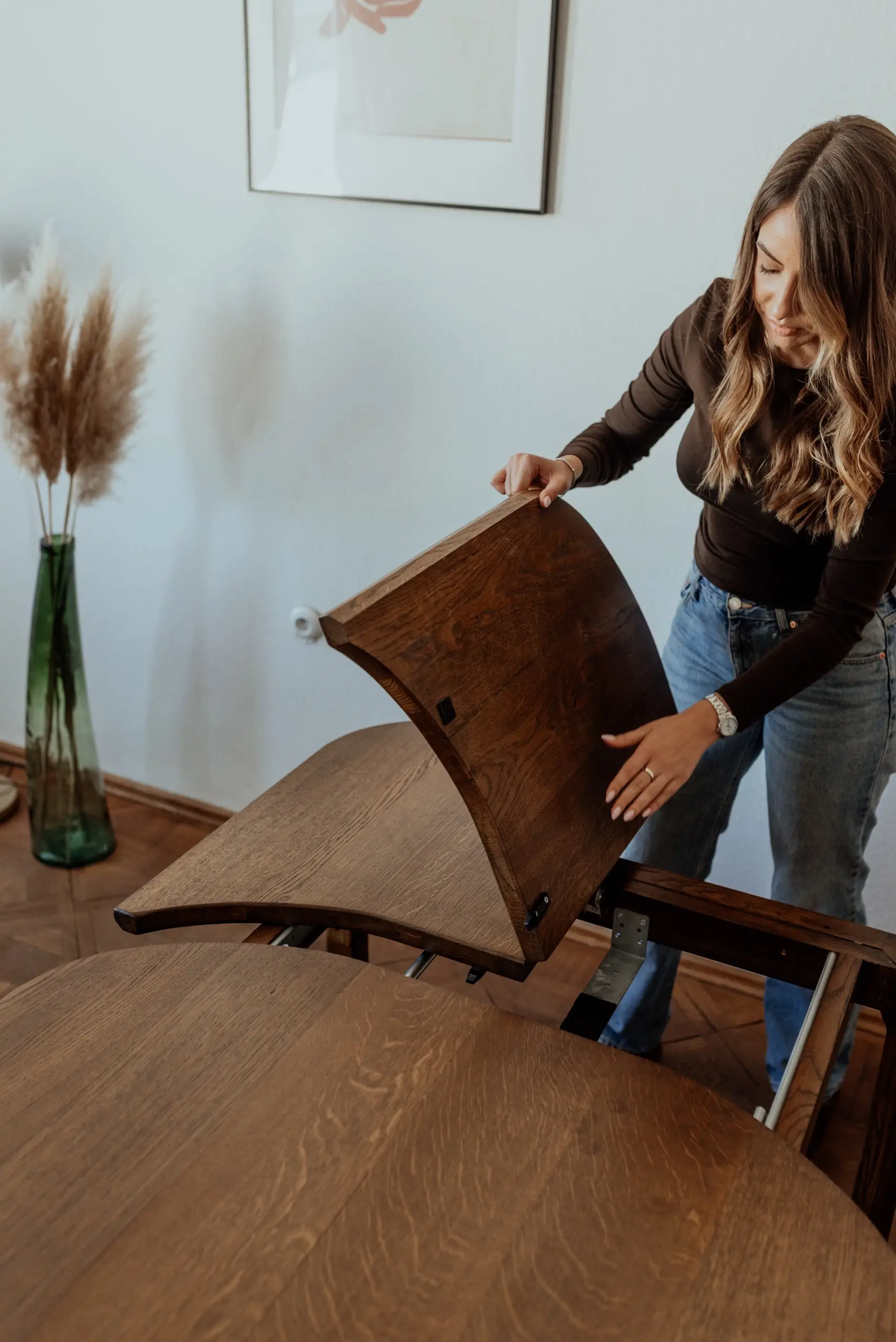 Każdy stół wykonany jest z prawdziwego drewna dębowego – żadnych oklein. Naturalny materiał gwarantuje trwałość i ponadczasowy wygląd.