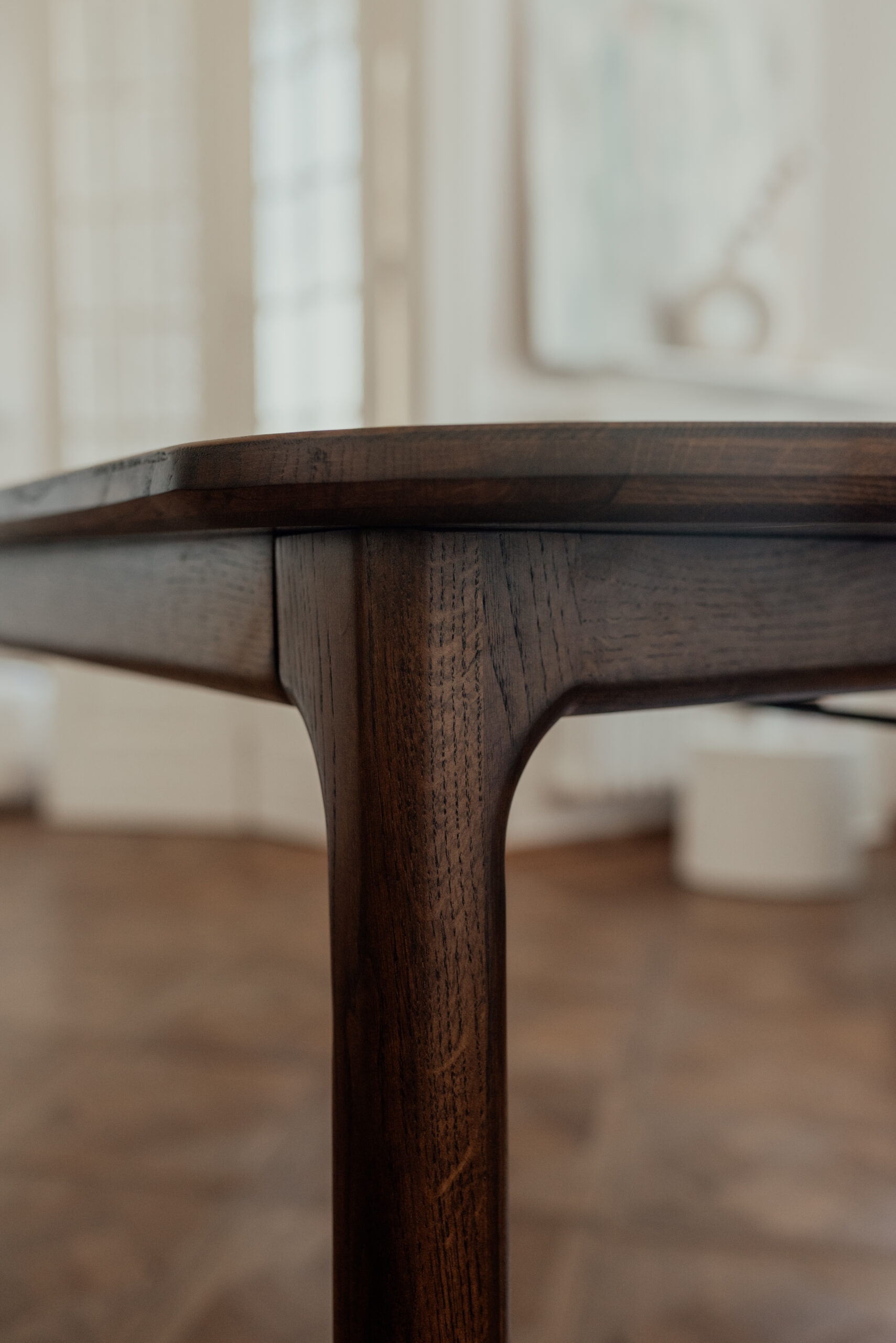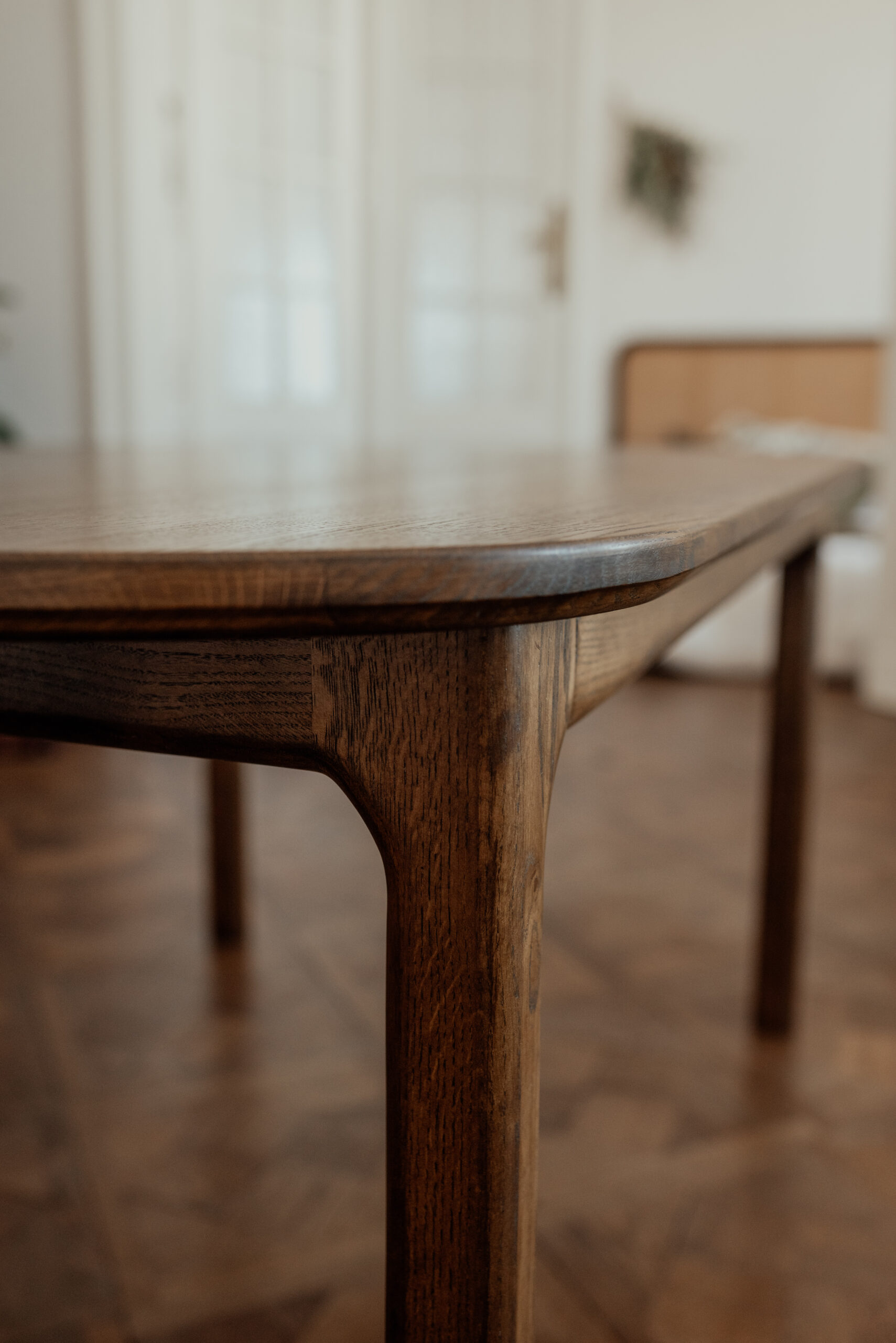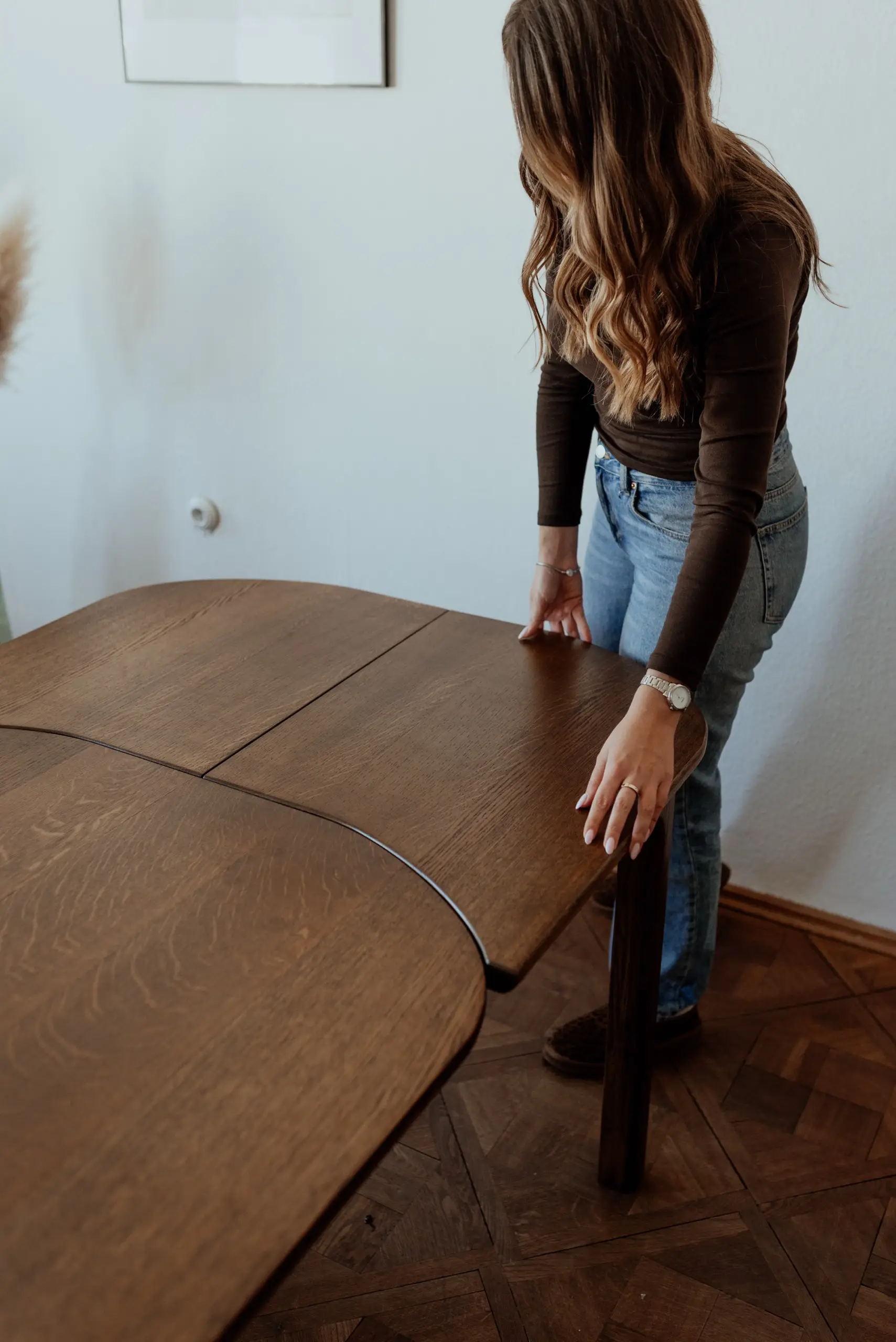 Każdy stół wykonany jest z prawdziwego drewna dębowego – żadnych oklein. Naturalny materiał gwarantuje trwałość i ponadczasowy wygląd.