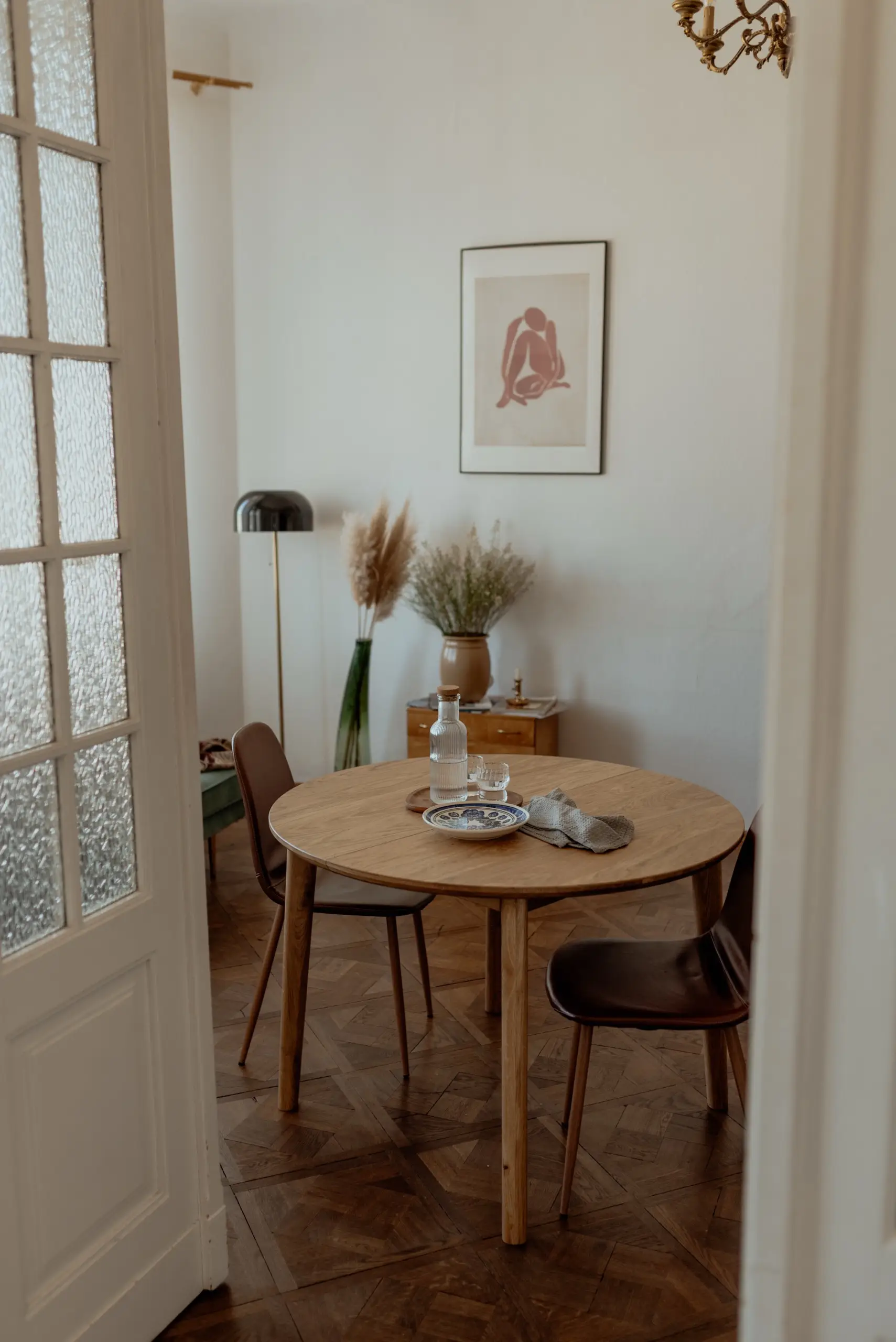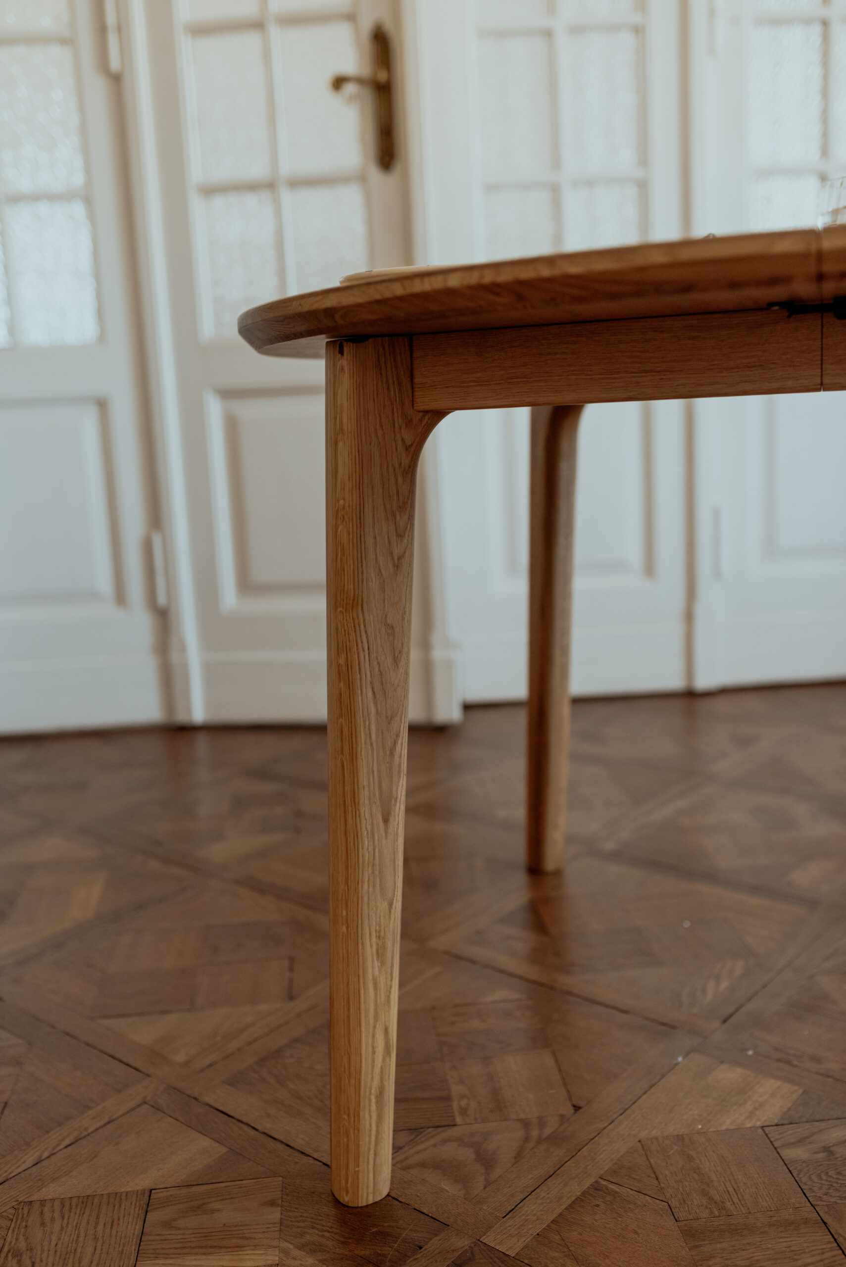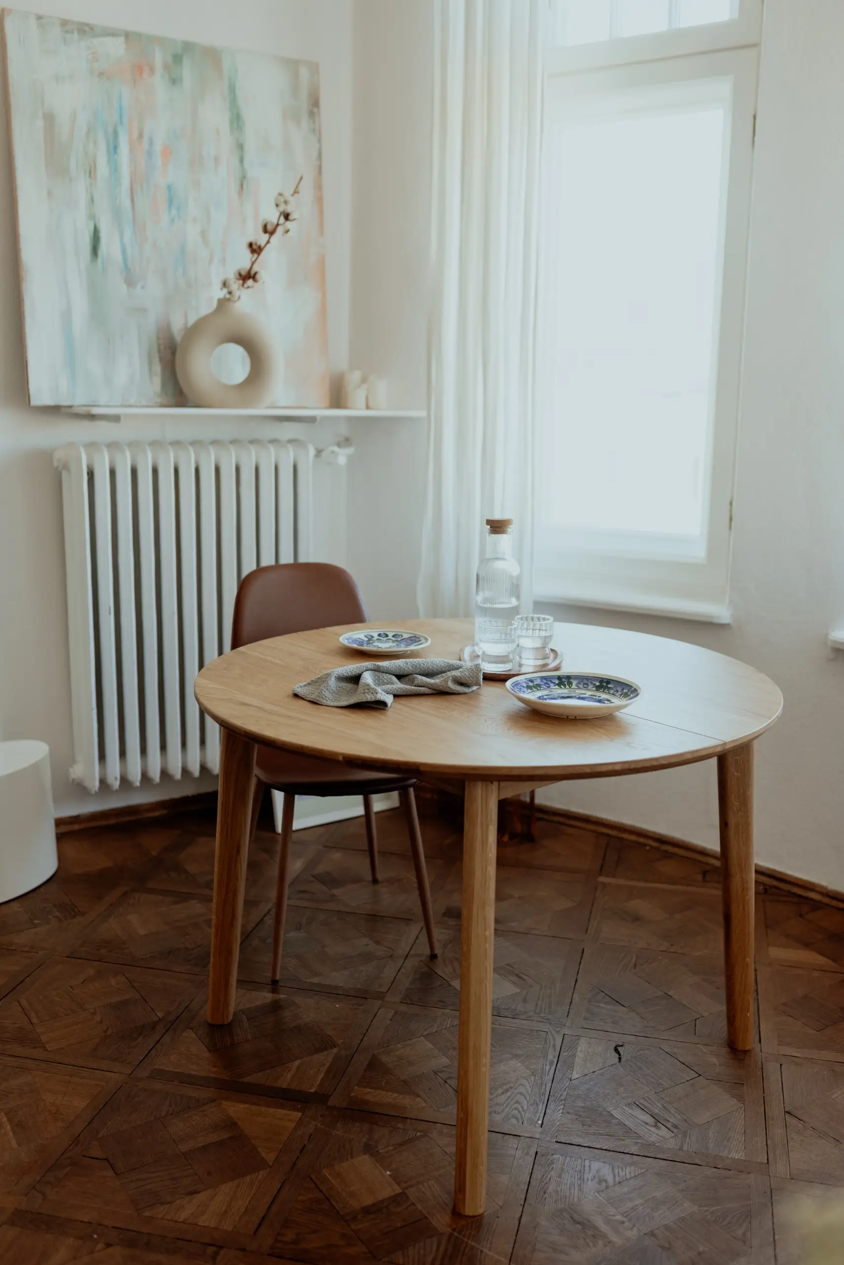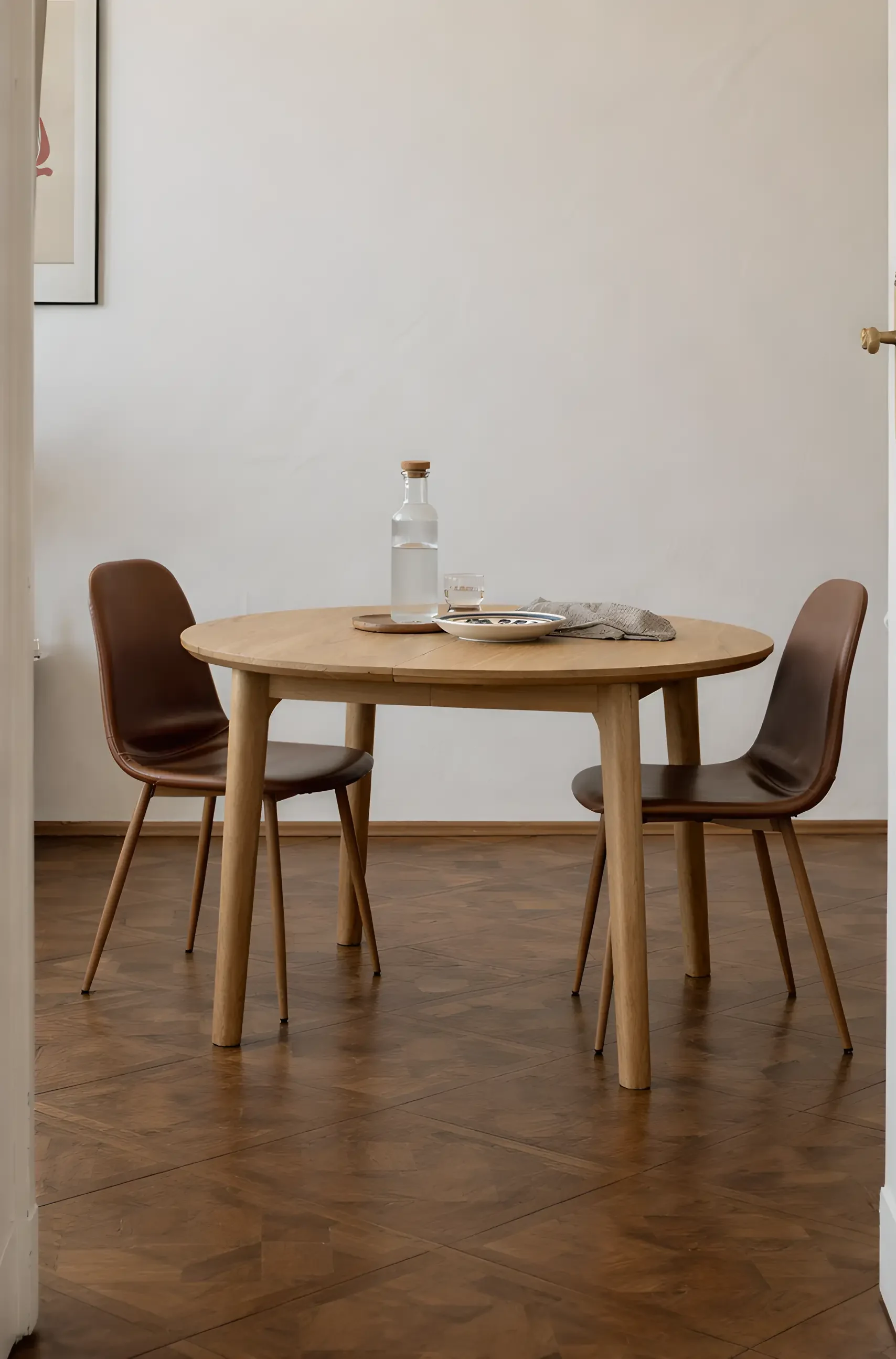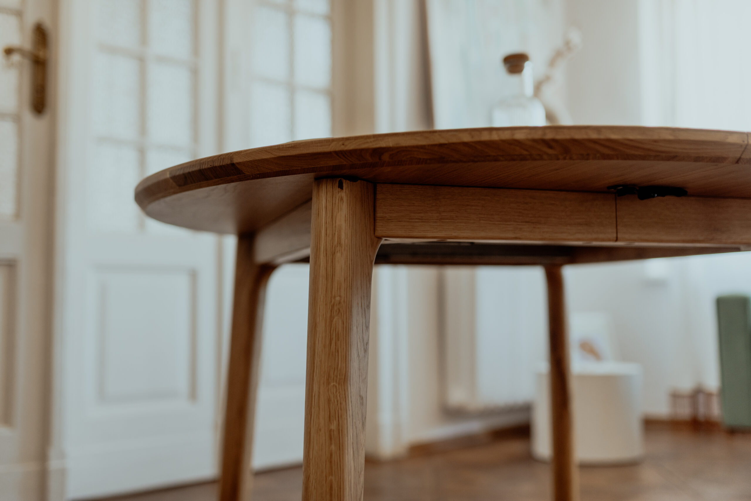 Każdy stół wykonany jest z prawdziwego drewna dębowego – żadnych oklein. Naturalny materiał gwarantuje trwałość i ponadczasowy wygląd.